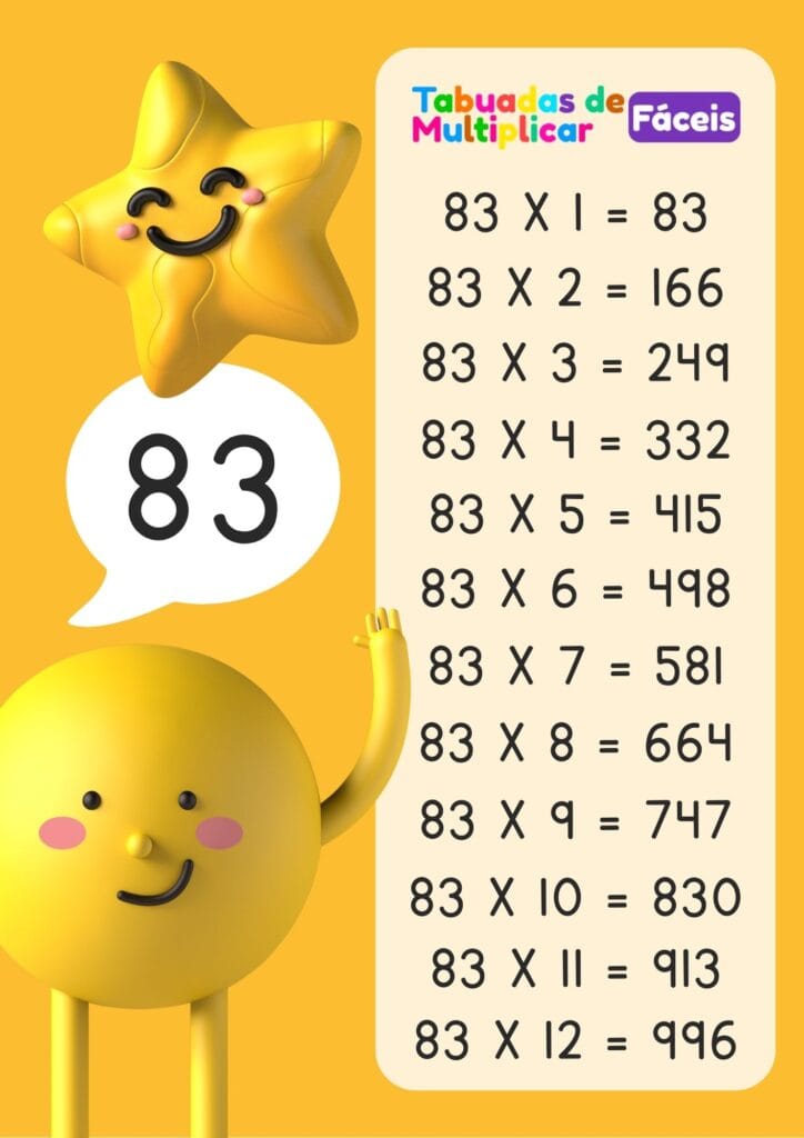 Imagens da tabuada do 83 para imprimir em PDF